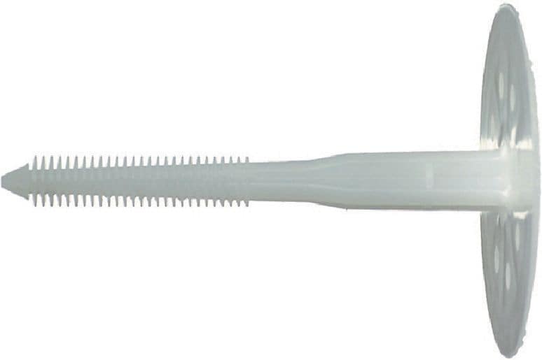 Economical plastic insulation anchor for fastening hard insulating materials to concrete and masonry