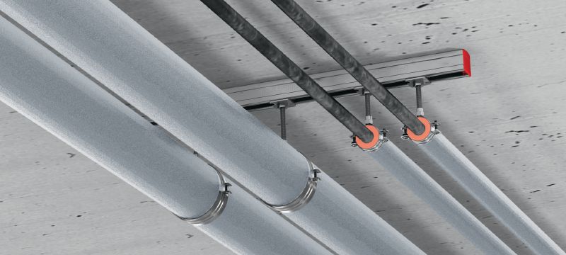 - Large pipe diameters with higher loads can be installed with two-screw heavy-duty pipe clamps