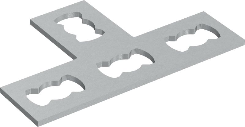 Galvanized flat T channel connector for fastening two MQ strut channels together